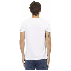 Elevate your off-duty style with Trussardi Action’s V-neck T-shirt. An impeccable fusion of comfort and panache, seamlessly crafted from a sumptuous blend of cotton and viscose. The stark white base serves as the perfect canvas for the bold front print that captures the essence of the brand’s bold and trendy aesthetic. Whether you’re hitting the streets or lounging casually, this T-shirt promises to keep your fashion game on point.