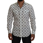 Dolce & Gabbana White Crown Print Slim Fit Cotton Shirt