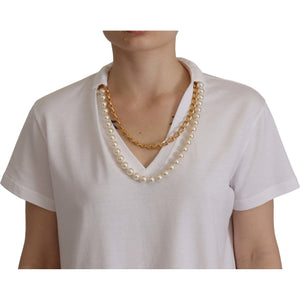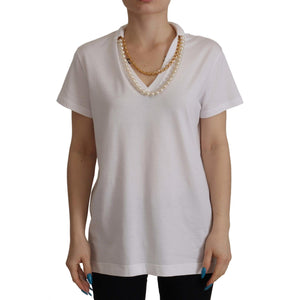 Dolce & Gabbana White Necklace Embellished Neckline T-shirt Top