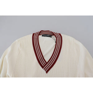 Dolce & Gabbana White Red Knitted V-neck Pullover Sweater