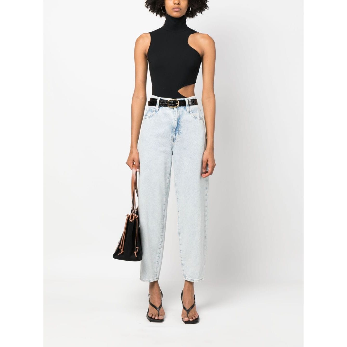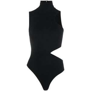 high-neck cut-out body from WOLFORD featuring black, high neck, cut-out detailing, sleeveless, bodycon design and stretch-design. High neck cut-out bodysuit Size and Fit - This piece fits true to size. We recommend you get your regular size. Model is 1,75m / 5ft 8in wearing size S
